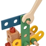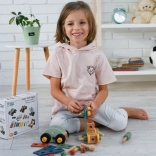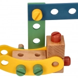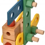 Wir präsentieren den einzigartigen Holzbaukasten für Kinder, der die Entwicklung von Hand-Auge-Koordination, logischem Denken und Kreativität fördert. Das Set enthält Schrauben, Leisten, Muttern, Räder sowie einen Schraubenzieher und Schlüssel - alles, was zum Bauen von Fahrzeugen benötigt wird.