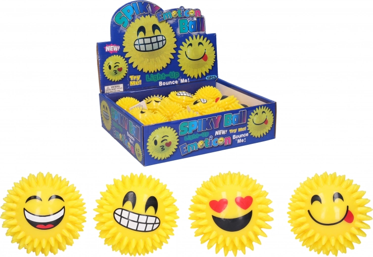 Unterhaltsamer Ball mit Lächeln, Durchmesser 7 cm, der beim Drücken pfeift und dank integrierter LEDs Lichteffekte bietet. Weiche Noppen für angenehmen Griff und extra Spaß. Ideal für Kinder und auch als lustiges Anti-Stress-Spielzeug. Batterien nicht austauschbar.