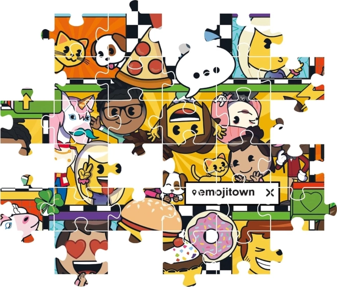 Die farbenfrohe Szene mit beliebten Emoji-Figuren motiviert zum Puzzeln und beschäftigt Groß und Klein stundenlang.