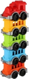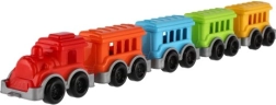 Bunter Plastikzug mit Lokomotive und 4 Waggons, begeistert Jungen und Mädchen. Dank der kompakten Größe für Kinderhände lässt er sich leicht bedienen, fördert die Feinmotorik und Fantasie und ist ideal für zu Hause und unterwegs.