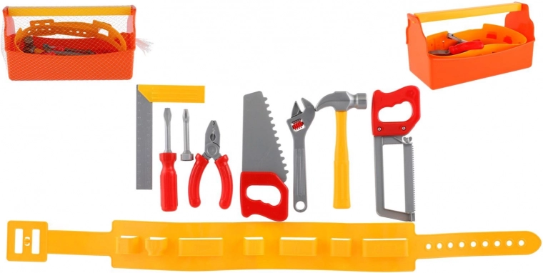 Dieses Kinder-Werkzeugset ist ideal für die erste Begegnung mit der Welt der Reparaturen. Die robuste Kunststoffkiste mit praktischem Griff und herausnehmbarem Fach hält alles an seinem Platz, während der verstellbare Gürtel die Werkzeuge stets griffbereit macht. Die Teile sind leicht und sicher, speziell für kleine Kinderhände konzipiert.