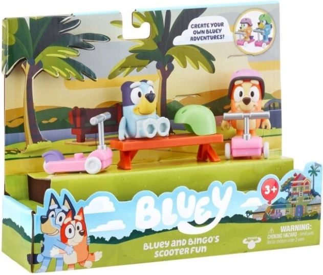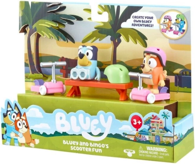 Wir präsentieren das Spielset mit den Figuren Bluey und Bingo, das spannende Erlebnisse direkt aus der beliebten Zeichentrickserie bietet. Das Set enthält Figuren, Roller und Helme - ideal für kreatives Spiel und Abenteuer.