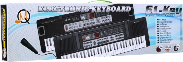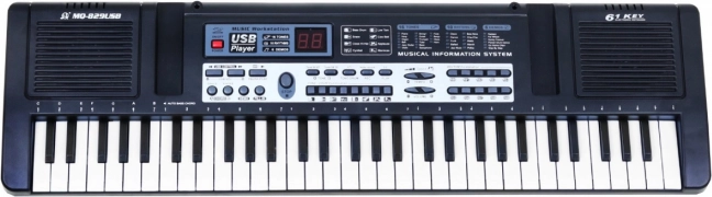 Das Keyboard bietet eine breite Palette an Klängen, Rhythmen und Begleitungen, darunter 16 Klänge (Klavier, Harfe, Jazzgitarre, Cello, Trompete, Saxofon u. a.), 10 Rhythmen (Disco, Funk, Ballade, Cha-Cha, Polka …), 8 Drum-Kombinationen und 6 Demo-Melodien. Nicht fehlen dürfen die Funktionen Aufnahme, Start/Stop, Akkorde und S.E/PLAY für Effekte. Praktisch ist auch der USB-Eingang zum Abspielen und Begleiten, der Mikrofoneingang sowie die Möglichkeit der Stromversorgung über Netzteil oder Batterien.
