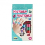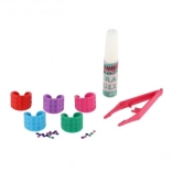 Das praktische Set enthält Ringe, Kleber, Pinzette und bunte Steinchen – Kinder können direkt nach dem Öffnen loslegen.