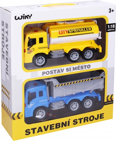 Set aus zwei Lastwagen mit Verkehrszeichen, 25 cm, mit Schwungrad. Tschechische Verpackung, Spaß und Lernen der Straßenverkehrsregeln in einem.