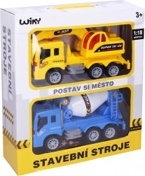 Wir präsentieren ein Spielzeugset mit Baufahrzeugen und Verkehrszeichen, das jedem kleinen Ingenieur Freude bereiten wird. Dieses Set enthält einen Bagger, einen Betonmischer und verschiedene Verkehrszeichen, die zusammen eine ideale Umgebung für unterhaltsames und lehrreiches Spielen schaffen.<7fp>