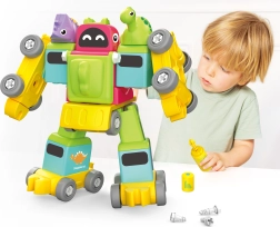 Entdecken Sie den vielseitigen Schraubbausatz für kleine Konstrukteure. Dieses unterhaltsame Set ermöglicht es Kindern, entweder einen detailreichen Zug mit Lokomotive und vier Waggons oder einen beeindruckenden Roboter/Dinosaurier zusammenzusetzen. Einfache Teile, der beiliegende Schraubendreher und die übersichtliche Anleitung sorgen für jede Menge kreativen Bauspaß.