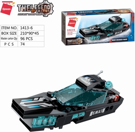 Das Mini-Bauset eines Einsatzboots aus der Serie Qman Shadow Pulse Combat Vehicle bietet 74 Teile für schnelles und spaßiges Bauen. Die Teile aus robustem ABS-Kunststoff sind kompatibel mit LEGO, Sluban und Cobi. Nach dem Fertigstellen aller Modelle der Serie können Sie ein großes Kampffahrzeug bauen – ideal für kleine Baumeister ab 6 Jahren.