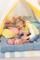 Die BABY born Mädchenpuppe mit Zauberschnuller ist die ideale Begleiterin für den Alltag und das Üben der Babypflege. Durch Drehen des Schnullers öffnet oder schließt sie die Augen – jederzeit im Sitzen, unabhängig von der Körperhaltung. Wird sie ohne Schnuller auf den Rücken gelegt, schließen sich die Augen automatisch. Der weiche Soft-Touch-Körper und die leicht beweglichen Arme, Beine und der Kopf erleichtern das Umziehen und sorgen für noch mehr Authentizität.