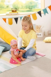 Dank der realistischen Funktionen trinkt die Puppe Wasser aus der Flasche, isst Brei, macht Pipi in die Windel oder aufs Töpfchen, weint echte Tränchen und kann auch groß machen. Das Spiel mit der Puppe unterstützt auf natürliche Weise soziale Fähigkeiten – Empathie, Kommunikation und Verantwortung. Im Set finden Sie 10 praktische Zubehörteile, die die Spielmöglichkeiten erweitern – und das alles ohne Batterien.
