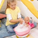 Die Puppe trinkt aus der Flasche, isst Brei, macht Pipi in die Windel oder aufs Töpfchen, weint Tränchen und kann auch groß machen. Authentisches Spiel, das Empathie und Fürsorge fördert.