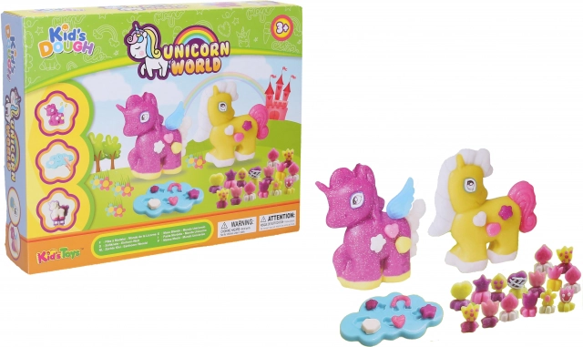 Fördern Sie die kindliche Fantasie mit einem zauberhaften Set zum Thema Einhörner. Das Set enthält 4 Farben Knete, eine praktische Rolle, eine sichere Schere, Dekorationen wie Flügel und Augen, Verzierungen und Ausstechformen für die einfache Gestaltung märchenhafter Figuren.