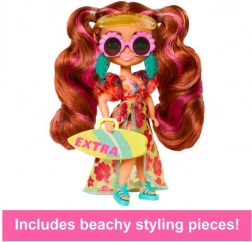 Strand-Accessoires verleihen jedem Spiel das gewisse Etwas – Sonnenbrille in Form rosa Muscheln, stylisches Tuch-Haarband und Schirmkappe passen zur Handtasche, die an ein Surfbrett erinnert. Der mitgelieferte Ständer ermöglicht es, die Puppe stabil zu präsentieren und Sammlerszenen zu gestalten.