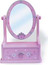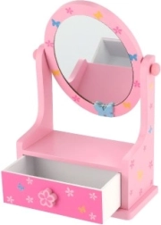 Der Spiegel kann in verschiedenen Winkeln eingestellt werden, was die Benutzung beim Schönmachen erleichtert.