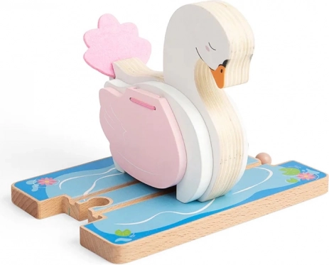 Fügen Sie der Welt Ihrer Holzeisenbahn ein romantisches Element hinzu – einen Schwanentunnel mit sanfter Pastellpalette und Teichmotiv. Kinder begeistert das einfallsreiche Design und die Möglichkeit, die Flügel anzuheben für eine leichte Durchfahrt der Züge. Das Teil passt hervorragend in Themenstrecken und erweitert die Spielmöglichkeiten.