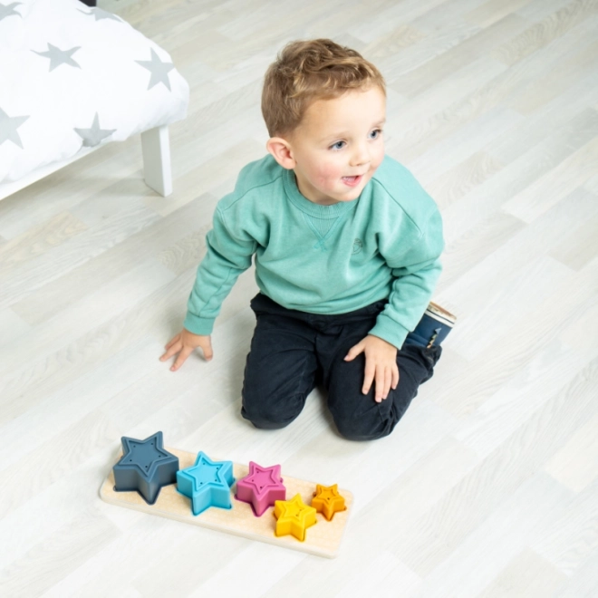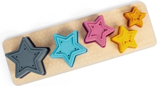 Dieses clevere Lernspielzeug kombiniert eine Holzbasis mit fünf farbigen Silikonsternen. Jeder Stern hat eine unterschiedliche Anzahl an Öffnungen und sorgt beim Wasserspiel für einen lustigen Effekt kleiner Springbrunnen. Kinder trainieren Hand-Auge-Koordination, Sortieren nach Größe und Farbe sowie logisches Denken.