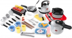 Dieses Set enthält alles, was Ihr Kind benötigt, um sich wie ein echter Koch zu fühlen – vom Grill bis zu Pfannen und Kännchen.
