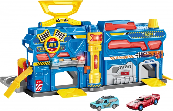 Diese realistische Rennstation bringt Kindern und Sammlern jede Menge Spaß. Dank der kompakten Abmessungen ist sie leicht zu transportieren, sodass die Rennen überall starten können. Licht- und Soundeffekte verstärken die Rennatmosphäre, und die fertige Szene ist im Handumdrehen aufgebaut.