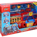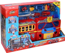 Die Abmessungen der Station 56 × 18 × 23 cm bieten ausreichend Platz zum Spielen und ermöglichen gleichzeitig leichtes Mitnehmen. Im Set finden Sie Verkehrszeichen, Feuerlöscher, Waschanlage, Tankstelle, Diagnosebereich und weitere Komponenten für eine vollständige Serviceausstattung der Feuerwehr.