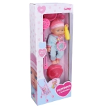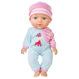 Entdecken Sie ein tolles Spielzeug, das Fantasie und Fürsorgefähigkeiten der Kinder fördert. Die 27 cm große Babypuppe wird mit einem praktischen Kinderwagen und einem Zubehörset für realitätsnahes Spiel geliefert. Dank der Geräusche beim Drücken auf den Bauch ist das Spiel noch unterhaltsamer und fesselnder.
