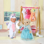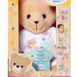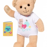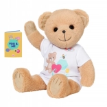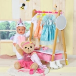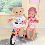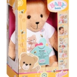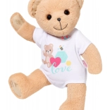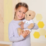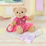 Der Teddybär ist in einem stylischen weißen Outfit gekleidet, das sich leicht mit anderen Stücken aus der BABY Born Kollektion kombinieren lässt.