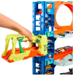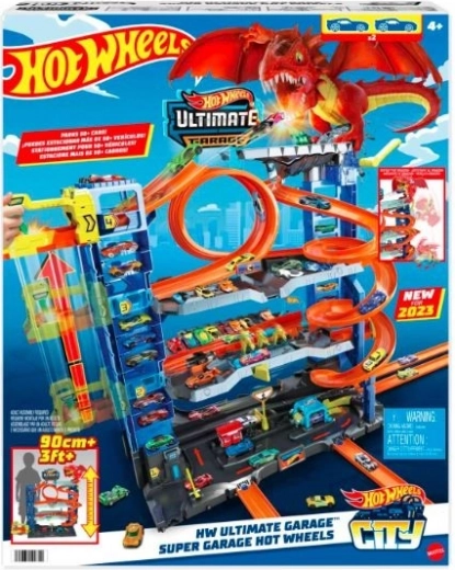 Tauchen Sie ein in die Welt des Rennens mit der Mega-Garage mit Drachen von Hot Wheels City. Dieses Spielset bietet: