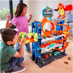 Das Spielset mit durchdachtem mehrstufigem Aufbau bietet Spaß durch Rennstrecken und interaktive Elemente.