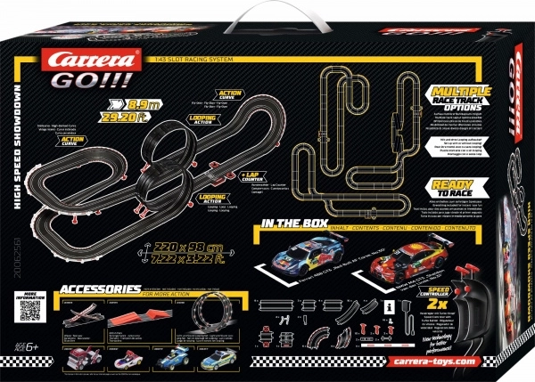 Die Carrera GO Autorennbahn zieht Sie in die Welt hoher Geschwindigkeiten und präziser Steuerung. Im Maßstab 1:43 erhalten Sie eine kompakte, aber actionreiche Strecke mit umfangreicher Ausstattung: zwei Loopings, überhöhte Kurve und vertikale Wand für adrenalintreibende Manöver. Der mechanische Rundenzähler hält die Rennen fair, und die Turbo-Funktion an den Controllern liefert den nötigen Schub auf der Zielgeraden.