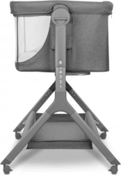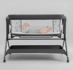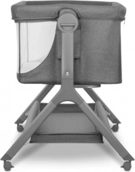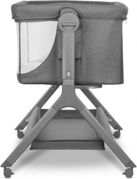 Wechseln Sie mühelos zwischen Beistellbett, freistehendem Bett und Wiege. Das horizontale Schaukeln beruhigt das Baby und hält gleichzeitig die Matratze eben für einen sichereren Schlaf.