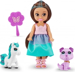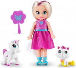 Jedes Set enthält eine Puppe mit reich verziertem Outfit, ein bis zwei niedliche Tiere (z. B. Einhorn, Pony oder Kätzchen) und thematisches Zubehör wie einen Kamm oder einen zauberhaften Schmetterlingsspiegel. Die kompakte Größe ist perfekt für unterwegs und das Kinderzimmer.