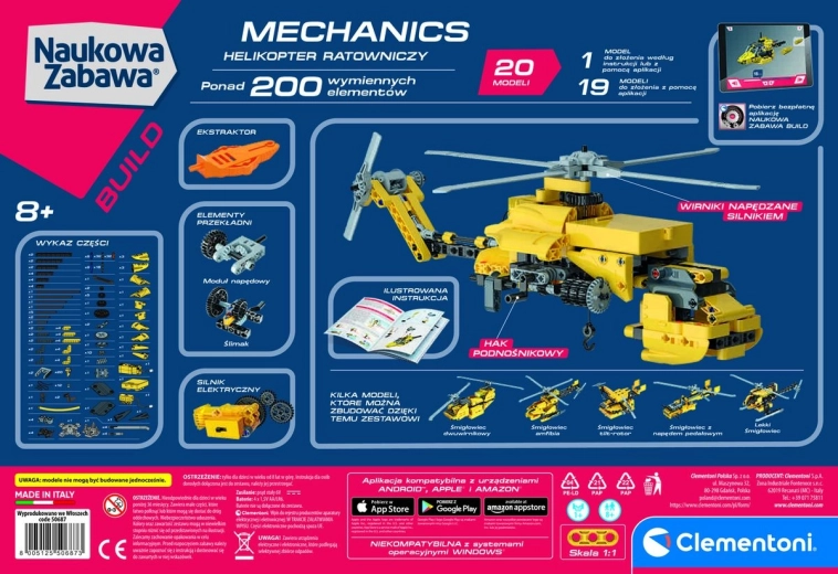 Im Lieferumfang ist der Zugang zu einer kostenlosen App mit interaktiven 3D-Anleitungen enthalten, die Sie Schritt für Schritt durch den Aufbau führt. Bauen Sie bis zu 10 verschiedene Modelle und testen Sie 10 technische Lösungen, von Rotormechanismen bis zur funktionierenden Seilwinde und den Seitenrudern. Hochwertige Verarbeitung und Fertigung in Italien gewährleisten Langlebigkeit und Präzision der Teile.