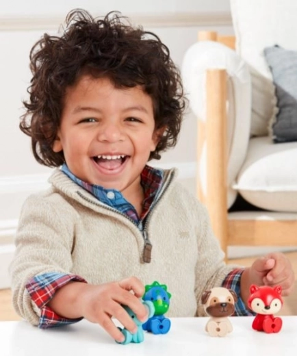 Das Skip Hop Zoo Crew Set bereichert jedes Kinderzimmer. Vier farbenfrohe Figuren – Preston Pug (Hund), Ferguson Fox (Fuchs), Kenzie Koala und Dakota Dino – sind für kleine Hände gestaltet, damit sie sich leicht greifen, tragen und in verschiedene Positionen stellen lassen. Dank der beweglichen Teile können sie stehen, sitzen und posieren – ideal, um kreatives Geschichtenerzählen zu fördern.