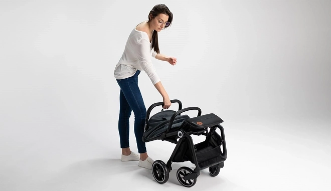 Für maximalen Komfort des Kindes gibt es eine stufenlos verstellbare Rückenlehne bis zur Liegeposition, eine verstellbare Fußstütze aus Ökoleder und ein XXL-Verdeck mit UPF50+ mit Belüftungsfenster. Für Sicherheit sorgen 5-Punkt-Gurte, reflektierende Elemente und eine zuverlässige Fußbremse. Zur praktischen Ausstattung gehören ein Einkaufskorb (bis 3 kg), ein Getränkehalter, ein Fußsack und ein Tragegurt für leichtes Tragen nach dem Zusammenklappen.