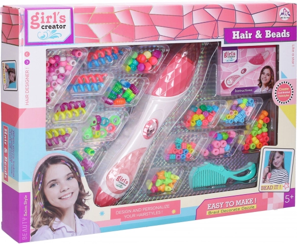 Entdecke eine spielerische Möglichkeit, deinen Stil zu betonen. Dank des praktischen Einfädlers fügst du Perlen mühelos in Haarsträhnen ein und kreierst einen originellen Look für den Alltag oder besondere Anlässe. Ein Kamm für das Vorbereiten der Strähnen und eine übersichtliche Anleitung sind enthalten.