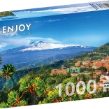 Genießen Sie ein hochwertiges Puzzle mit einem eindrucksvollen Motiv der sizilianischen Landschaft – der Vulkan Ätna und die historische Stadt Taormina schaffen eine stimmungsvolle Komposition, die Reisebegeisterte und Liebhaber künstlerischer Fotografie erfreut. Dank 1000 sorgfältig gestanzter Teile erwartet Sie eine angenehme Herausforderung und Erholung.