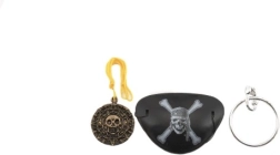 Augenklappe, Medaillon mit Schnur und Ring unterstreichen den Piratenlook und beflügeln die Fantasie beim Rollenspiel.