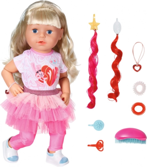 Spielen Sie mit der älteren Schwester von BABY born, die unglaubliche sieben realistische Funktionen bietet, die stundenlang Spielspaß garantieren. Die Puppe ist dank ihrer Gelenke bereit für jedes Abenteuer, da sie verschiedene Posen und Bewegungen einnehmen kann. Ihre langen blonden Haare warten darauf, mit Hilfe der im Paket enthaltenen Haaraccessoires gestylt zu werden.
