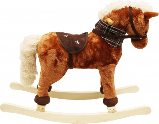 Das niedliche Schaukelpferd im Design eines braunen Pferdes erfreut jedes Kind. Es hat eine weiche Plüschoberfläche, stabile Holz-Kufen und bietet Soundeffekte, die per Knopf im Ohr aktiviert werden. Das Batteriefach ist am Bauch versteckt, enthalten sind 3× AG13/LR44 für den sofortigen Einsatz.