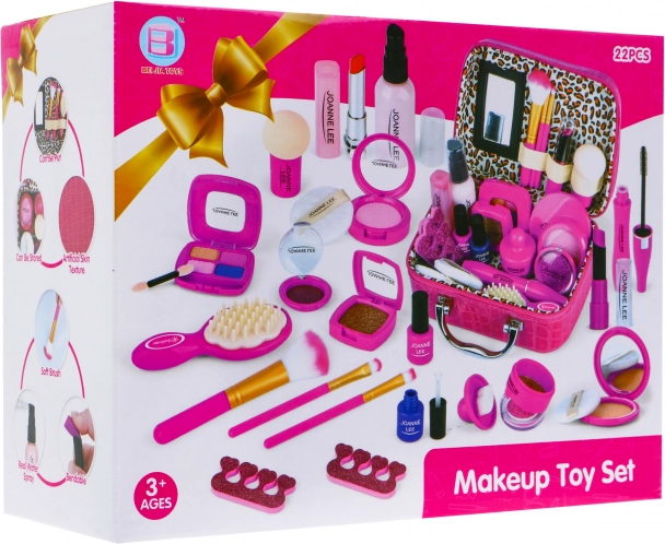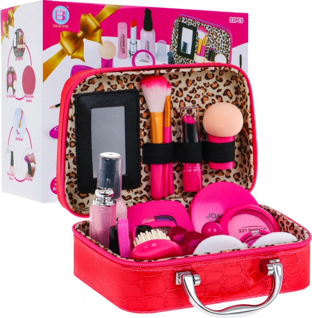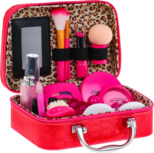 | Ein Set mit einer Tasche, die randvoll mit sicheren Schminkaccessoires gefüllt ist, ist ein Spielzeug für Kinder ab 3 Jahren. Der elegante und große Koffer besteht aus weichem Ökoleder. Er hat einen bequemen Griff, vier kleine Füße an der Unterseite und einen Innenspiegel. Er wird mit einem Reißverschluss geschlossen. Das gesamte Set besteht aus 22 Teilen, enthält Kosmetik wie Lidschatten, Glitzer, Lippenstifte, Nagellack, Mascara und vieles mehr. Die Kosmetik ist eine Attrappe, sieht aber realistisch aus, nutzt sich nicht ab und die Kinderhaut ist sicher. Das Spielen mit Kosmetik fördert kreatives Denken, übt die Vorstellungskraft und unterstützt die Konzentration. | |