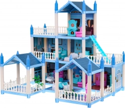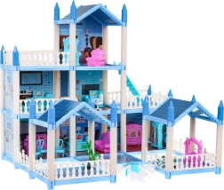 3-stöckiges Puppenhaus - bezaubernde blau-weiße Villa für Kinder ab 6 Jahren. Dieses Haus fördert das kreative Spielen durch detailliert gestaltete Innenräume und Möbel.