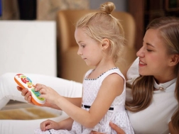 Das Kind bekommt seine eigene „Fernbedienung“ und kann sicher seine „Kanäle“ umschalten. Das englisch sprechende Spielzeug unterstützt die Aussprache der ersten Wörter.