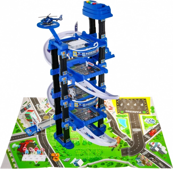 | | Das große mehrstöckige Polizei-Parkhaus ist für Kinder ab 3 Jahren geeignet. Das Parkhaus besteht aus fünf Ebenen, die mit einem Aufzug oder über eine Rutsche erreicht werden können. Auf dem Weg von Ebene zu Ebene trifft das Kind auf viele Attraktionen. Auf der unteren Ebene befindet sich eine Strecke, auf der Fahrzeuge fahren können, weiter oben auf den anderen Ebenen gibt es Parkplätze für Fahrzeuge. Ganz oben gibt es einen Landeplatz für einen Hubschrauber und einen Aufzug mit blinkenden Lichtern und Geräuschen, der nach oben und unten fährt. Zum Set gehören zwei Fahrzeuge, ein Hubschrauber, Verkehrszeichen sowie eine Unterlage mit Straßen und Gebäuden für das Parkhaus. Das Spielzeug wird mit 3 x AA 1,5V Batterien betrieben, die im Set enthalten sind. |