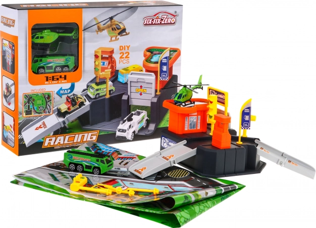 Alles Nötige für sofortigen Spielspaß ist dabei: Auto, Hubschrauber, Verkehrsschilder und Aufkleber für feine Details. Das Set ist ideal zur Förderung der Hand-Auge-Koordination, zum Erlernen grundlegender Verkehrsregeln und für das gemeinsame Spiel von Geschwistern.