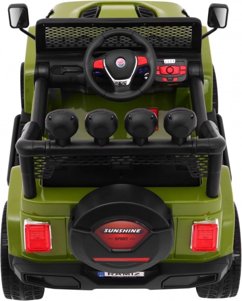 Das elektrische Kinderauto Raptor Drifter 4x4 in Grün ist ein robustes Offroad-Fahrzeug für kleine Abenteurer. Vier 45-W-Motoren liefern genügend Kraft im unebenen Gelände, während der sanfte Start ein komfortables und sicheres Anfahren ohne Ruckeln gewährleistet. Große EVA-Räder 30 × 19 cm mit doppelten hinteren Stoßdämpfern erhöhen Komfort und Stabilität.
