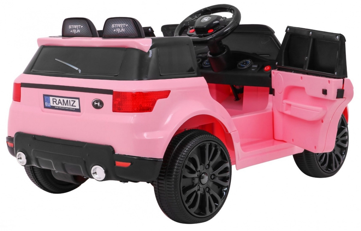 Das rosa elektrische Kinderauto Start Run SUV begeistert kleine Fahrer mit modernem Design und Funktionen wie in einem echten Auto. Zwei 30-W-Motoren, gespeist von zwei 6-V-Akkus, sorgen für spritzige Fahrten, während sanftes Anfahren, Vorwärts-/Rückwärtsgang und Kunststoffräder ideal für Fahrten drinnen und draußen sind.