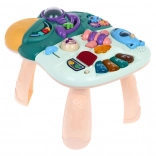 Hinterleuchtete Orgel-Tasten, Melodien, Zahnräder, Schieberegler, Kugeln und eine abnehmbare Rakete halten die Aufmerksamkeit und fördern Feinmotorik, Seh- und Hörsinn.
