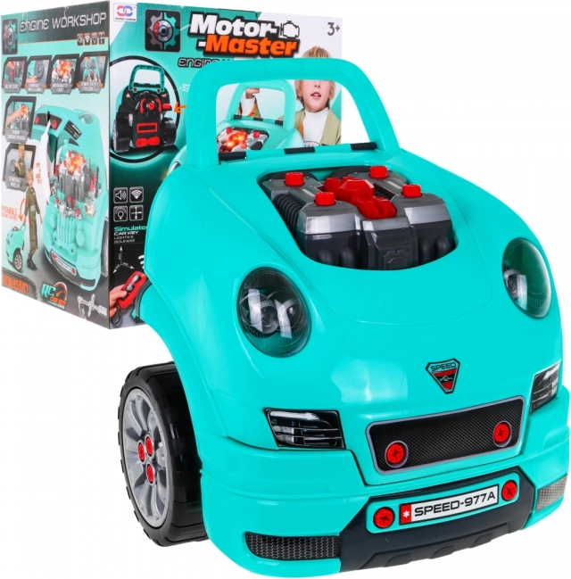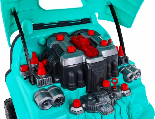 Dieses umfassende Set des „kleinen Mechanikers“ bietet die Frontpartie eines Autos mit reich ausgestattetem Motor zum Montieren und Demontieren, ein funktionales Armaturenbrett mit Startknopf, ein Lenkrad mit Hupe und Warnsignal. Kinder können Zündkerzen, Räder und Motorteile „warten“, während Lichter und Geräusche über die beiliegende Fernbedienung gesteuert werden.