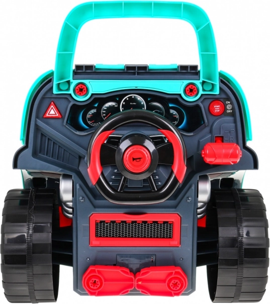 Enthalten sind 61 Teile, darunter Räder mit Radkappen, Schrauben, Werkzeug und Ersatzteile für den Motor. Das praktische Fach unter dem Lenkrad fasst Kleinteile und Zubehör, außerdem besitzt das Spielzeug einen Griff für leichtes Tragen. Ideal für Kinder ab 3 Jahren, die entdecken möchten, wie ein Auto funktioniert, und dabei Geschicklichkeit und Fantasie fördern.