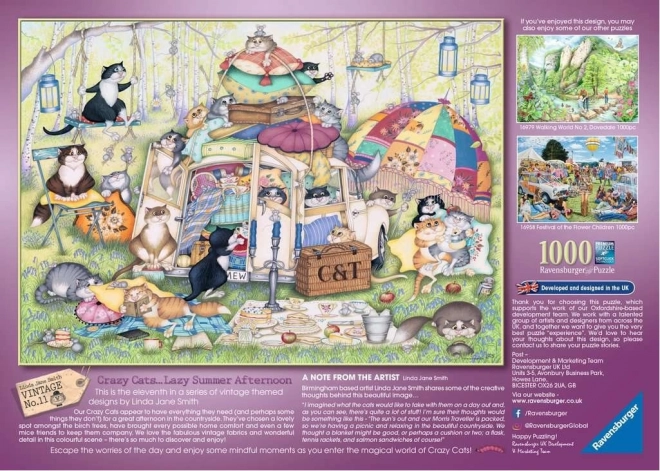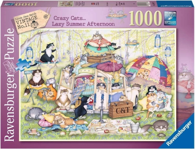 Tauchen Sie ein in die verspielte Welt des katzenhaften Schabernacks mit dem Motiv „Fauler Sommernachmittag“. Dieses Bild aus der beliebten Serie CRAZY CATS bietet witzige Details und eine angenehme Herausforderung für alle, die beim Puzzeln entspannen möchten.
