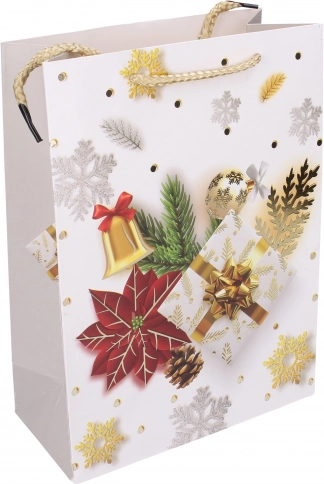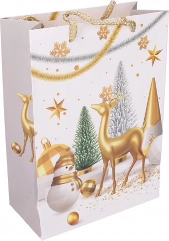 Weihnachtliche Geschenktasche S (18 × 24 × 8,5 cm) in 4 Motiven. Elegant, robust und ideal für das schnelle Verpacken kleinerer Geschenke.